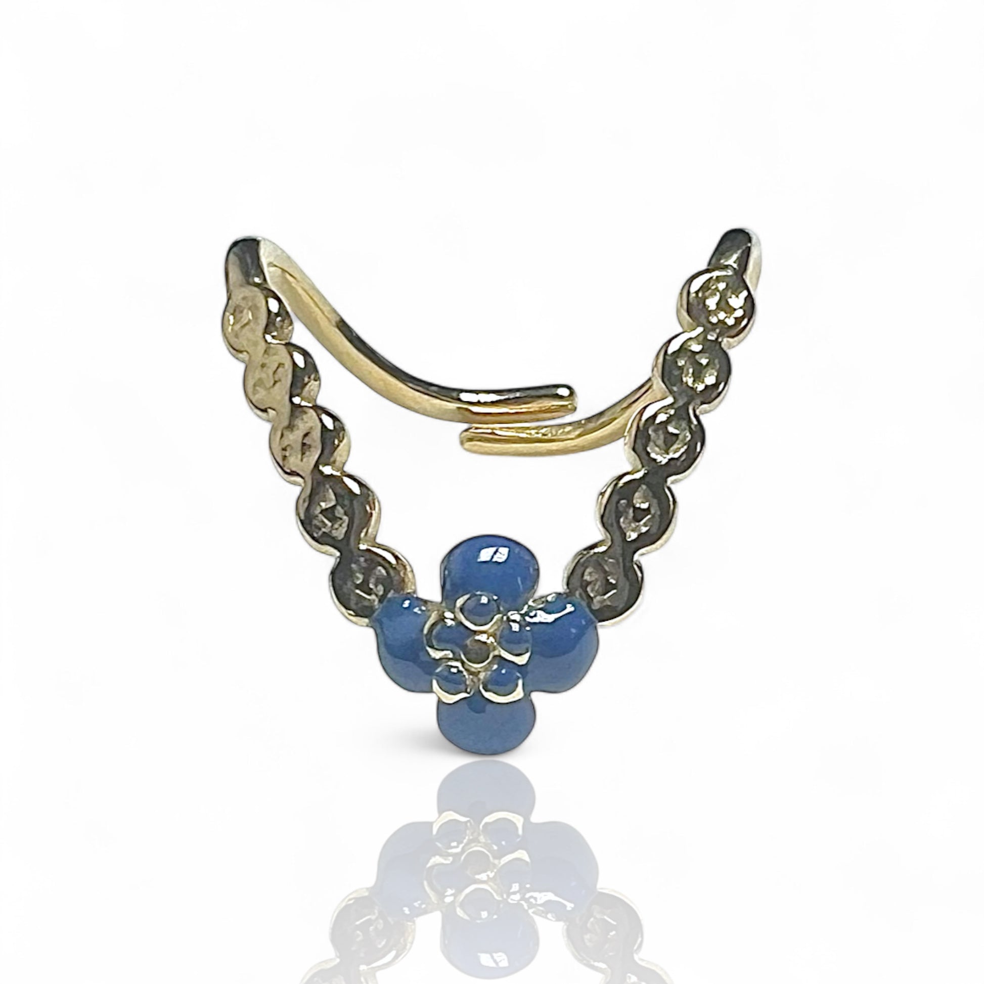 Pensée pour les amatrices de bijoux fantaisie originaux, cette bague marie subtilement la structure géométrique du V et la douceur d’un motif floral. Le contraste entre le doré lumineux et le bleu profond donne à ce bijou fantaisie un charme intemporel, parfait pour toutes les saisons.