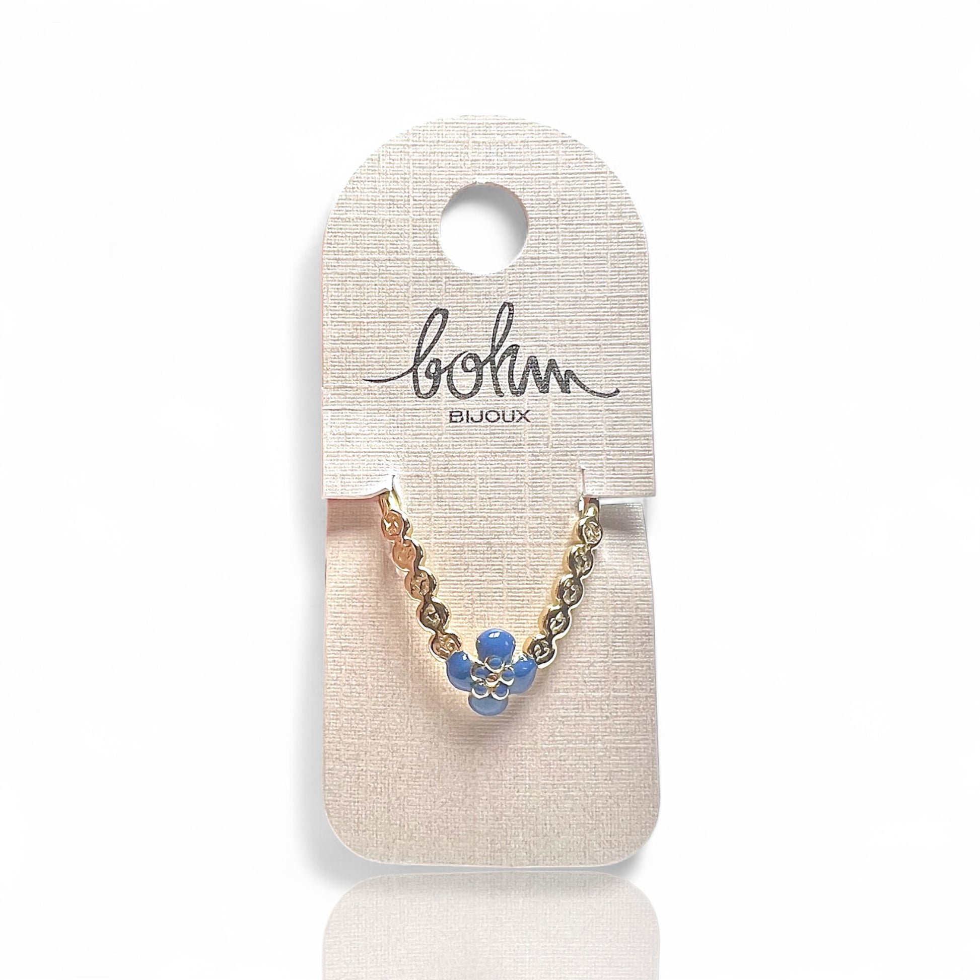 Craquez pour cette bague dorée en acier inoxydable signée Bohm, une pièce délicate et poétique qui combine modernité et féminité. Son design en forme de V allonge élégamment le doigt, tandis qu’une fleur bleu marine vient orner le centre avec une touche de couleur raffinée et tendance.