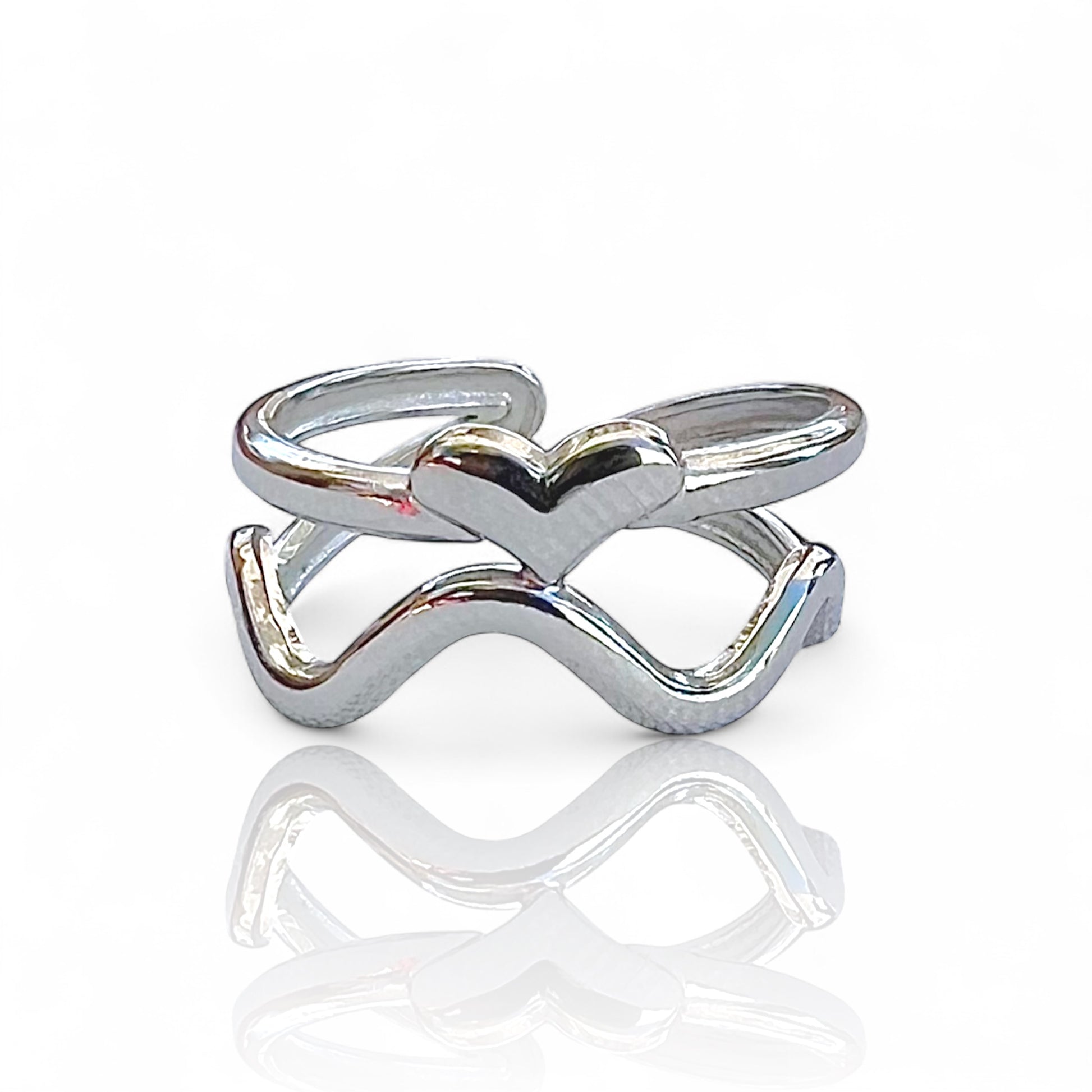 Bague Duo – Cœur & Zigzag – Acier inoxydable réglable