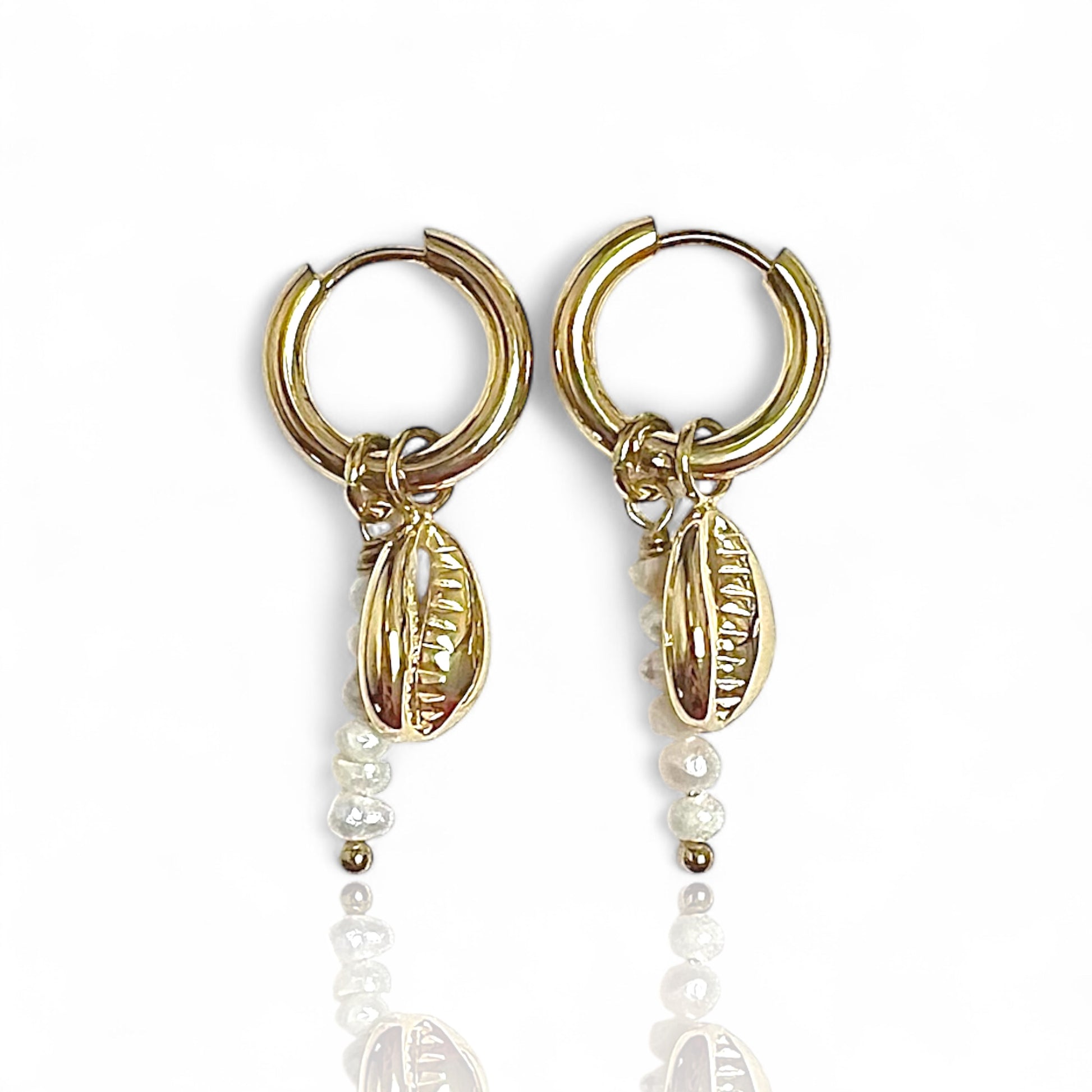 Boucles d’oreilles dorées coquillage & perles d’eau douce – Acier inoxydable – Bohm