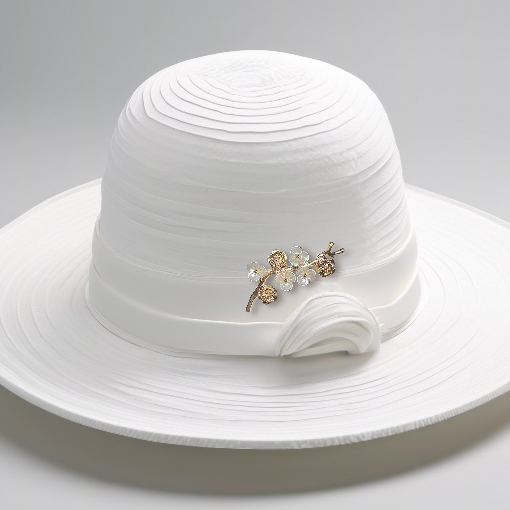 - Design raffiné : La branche dorée ornée de fleurs blanches et dorées apporte une élégance intemporelle à cette broche fantaisie.