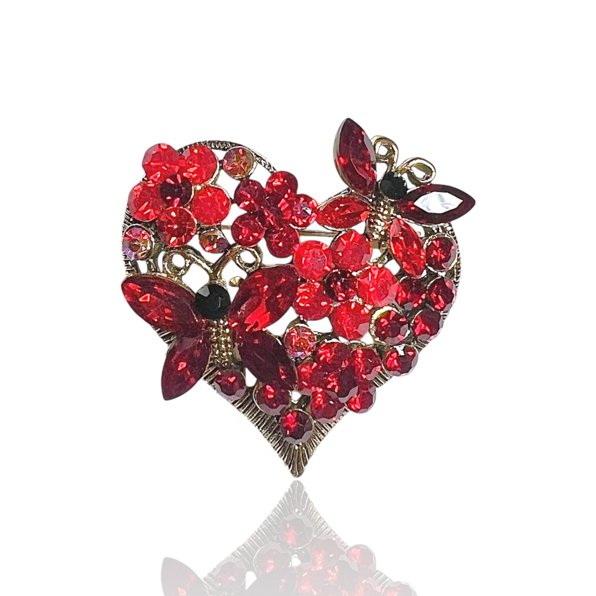 Que vous soyez amatrice de broches vintage ou passionnée de bijoux romantiques, cette broche cœur en strass rouges est une pièce incontournable qui sublimera votre style.