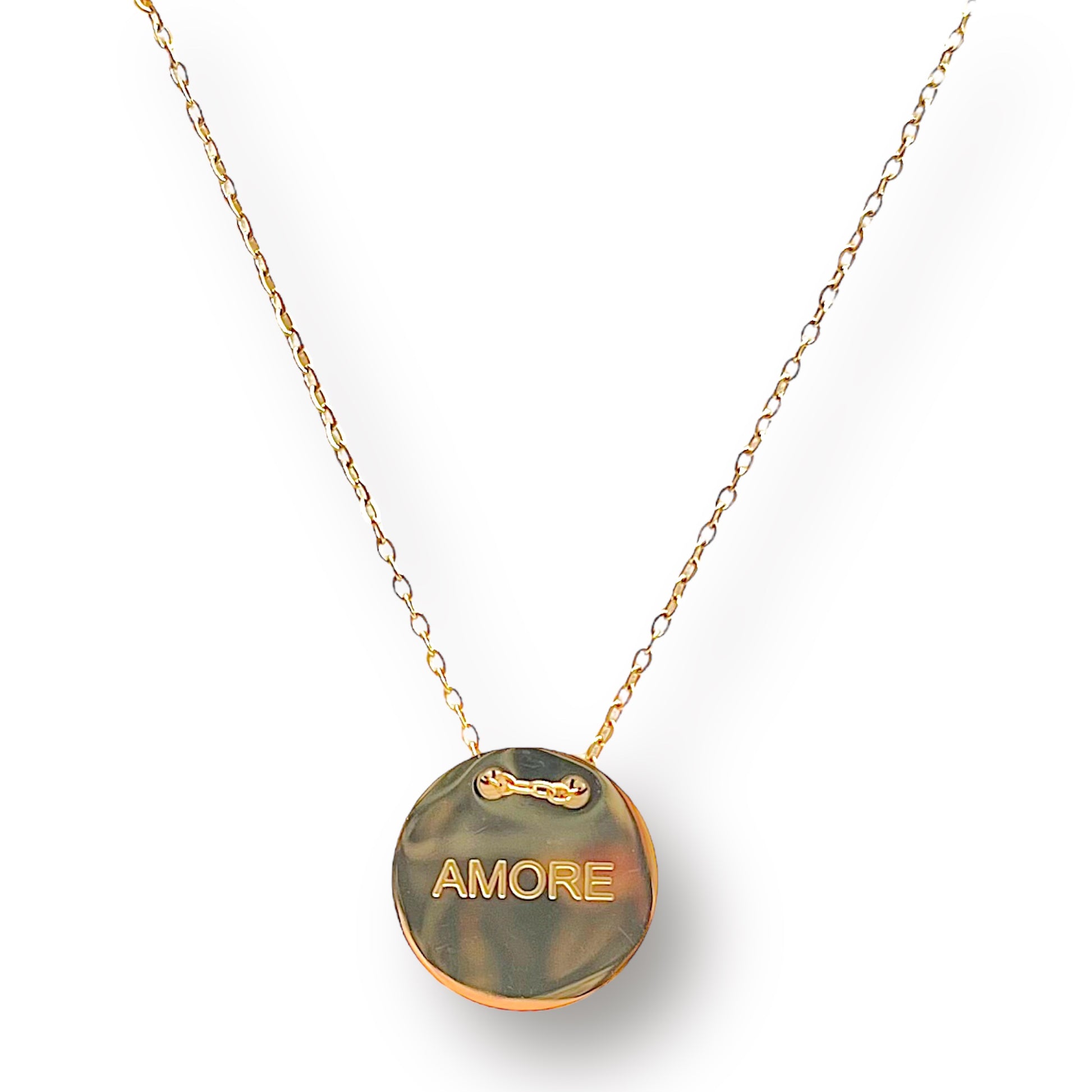 Collier médaille « AMORE » en acier inoxydable doré – Bijou fantaisie élégant & symbolique