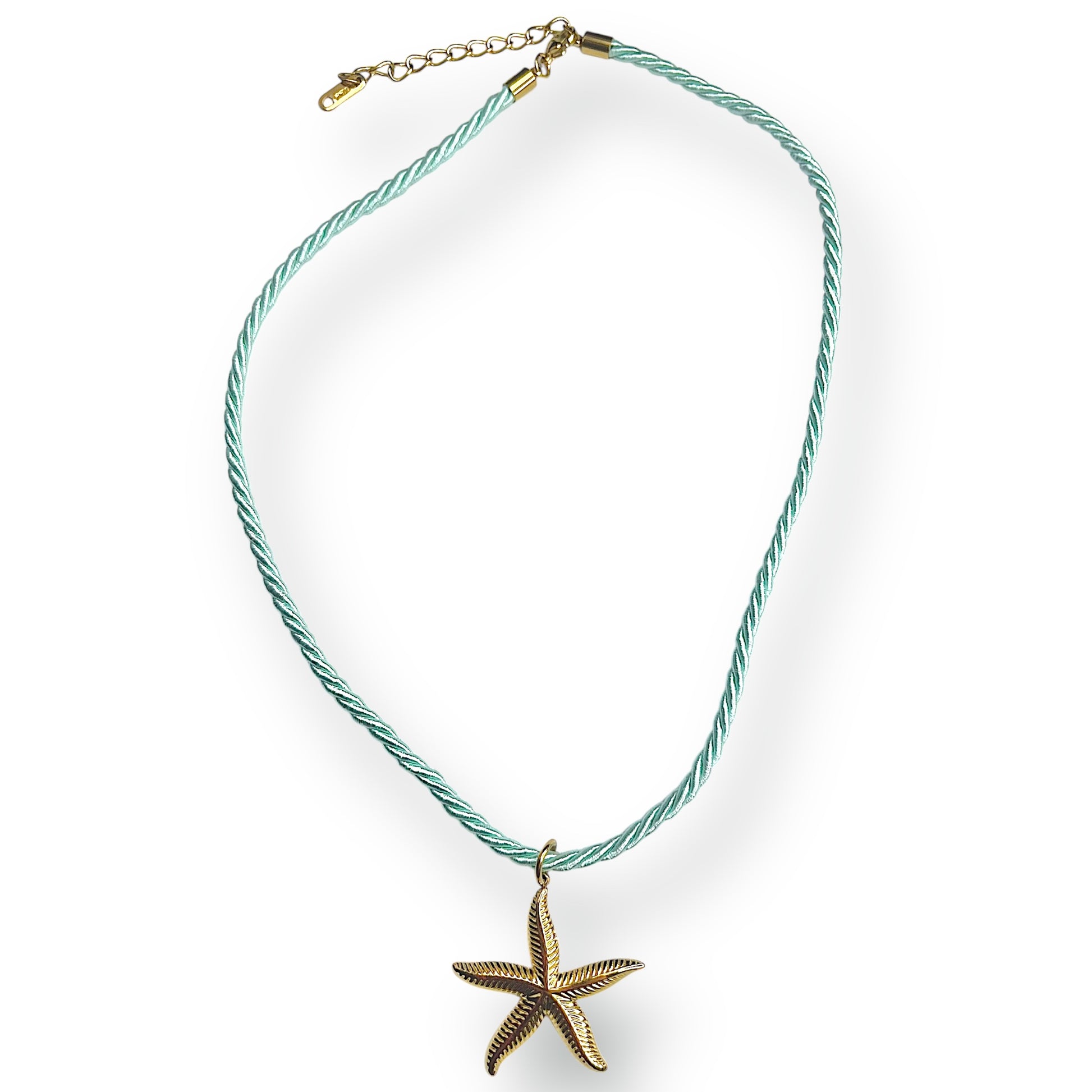 Collier corde bleue & étoile de mer dorée – Bijou fantaisie marin & tendance