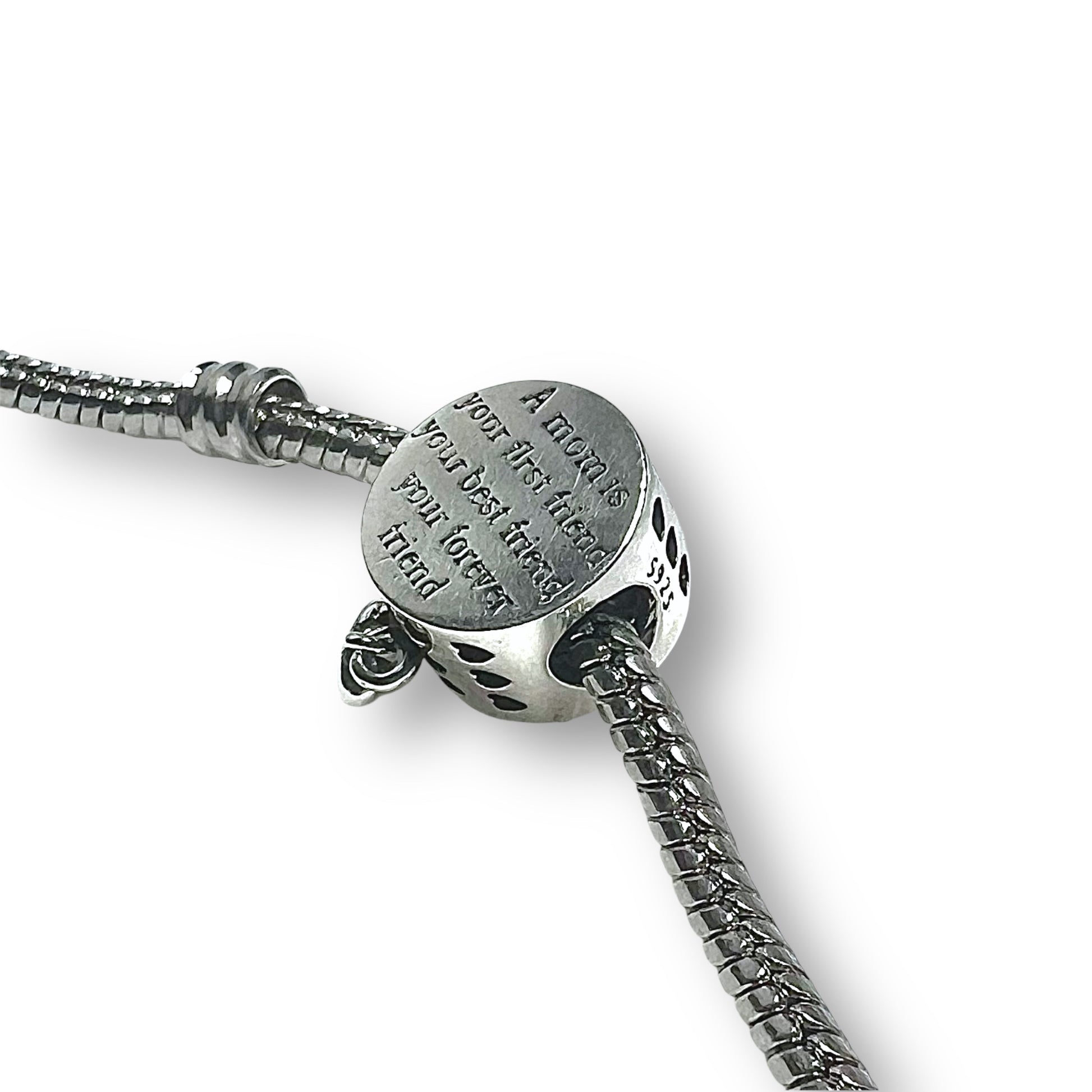 Ajoutez cette perle sentimentale en argent S925 à votre bracelet fantaisie personnalisé et portez un symbole d’amour maternel au quotidien, tout en enrichissant votre collection de bijoux.