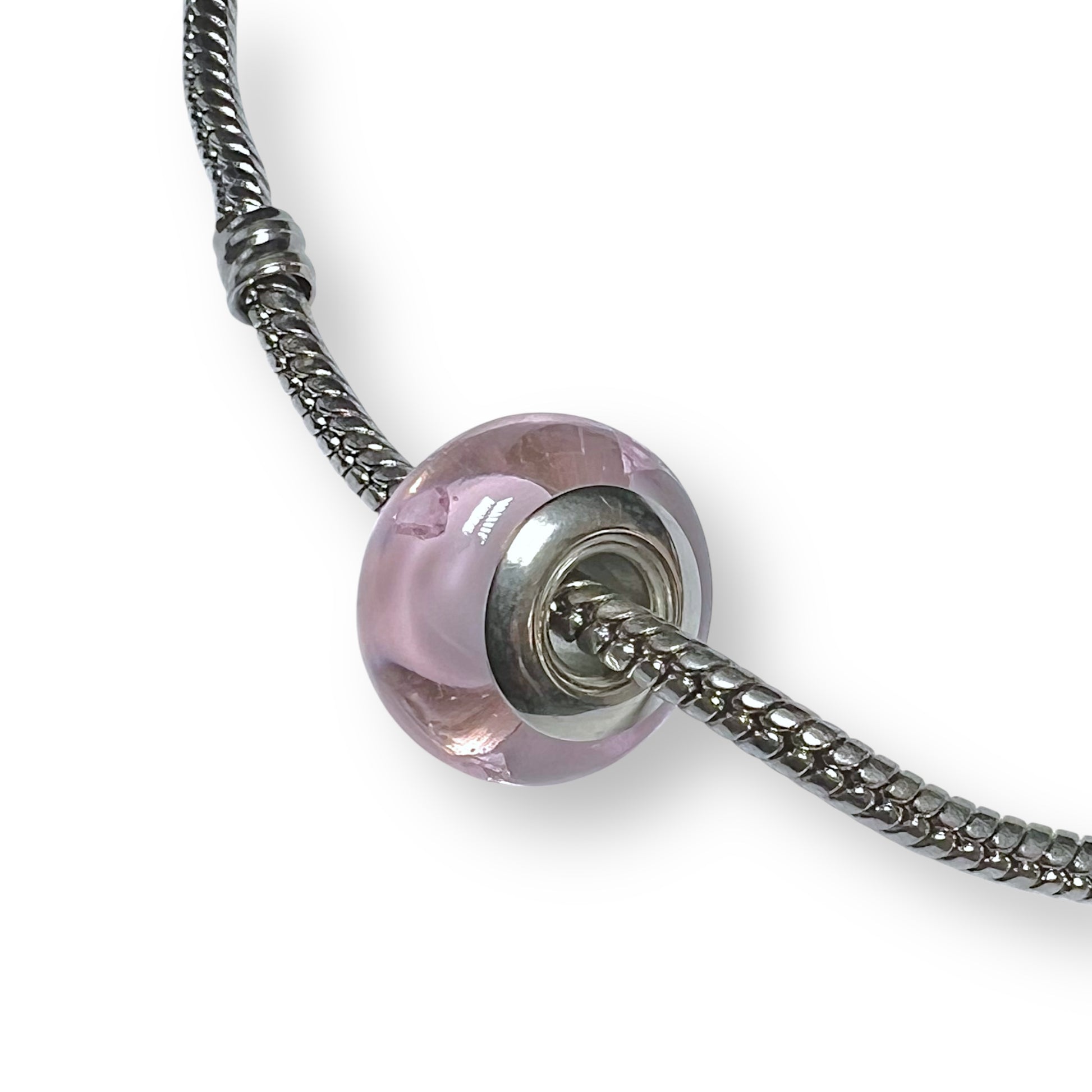 Offrez à votre bracelet charms une touche de douceur et de romantisme avec cette magnifique perle en verre façon Murano. Son rose clair délicat, sublimé par de petites bulles en forme de cœur, évoque la tendresse et l’élégance intemporelle des bijoux personnalisés. Un choix parfait pour les amoureuses des charms raffinés et féminins !